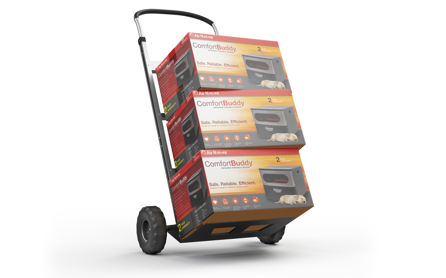 Packaging design for Comfort Buddy portable heater.