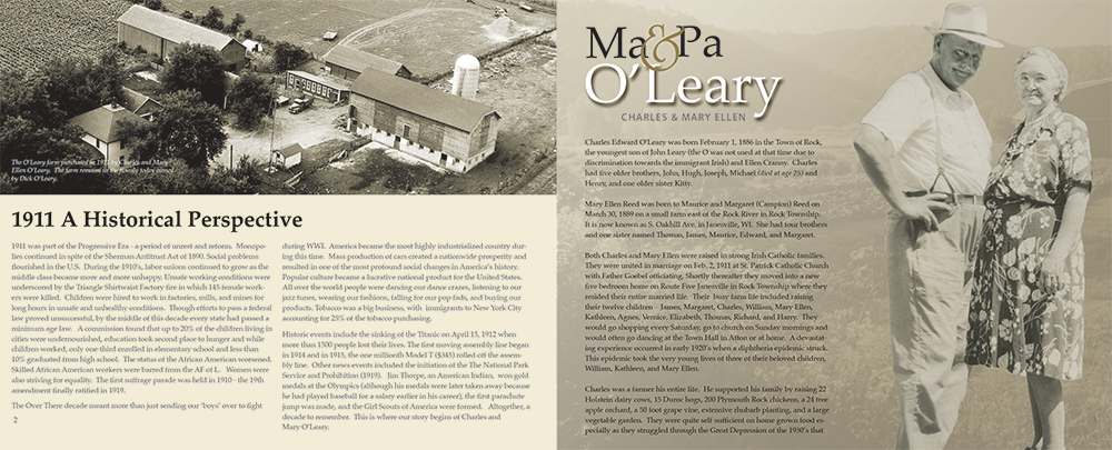 The 80-page O'Leary book begins with an historical perspective from 1911, when the first relatives came to Wisconsin from Ireland.