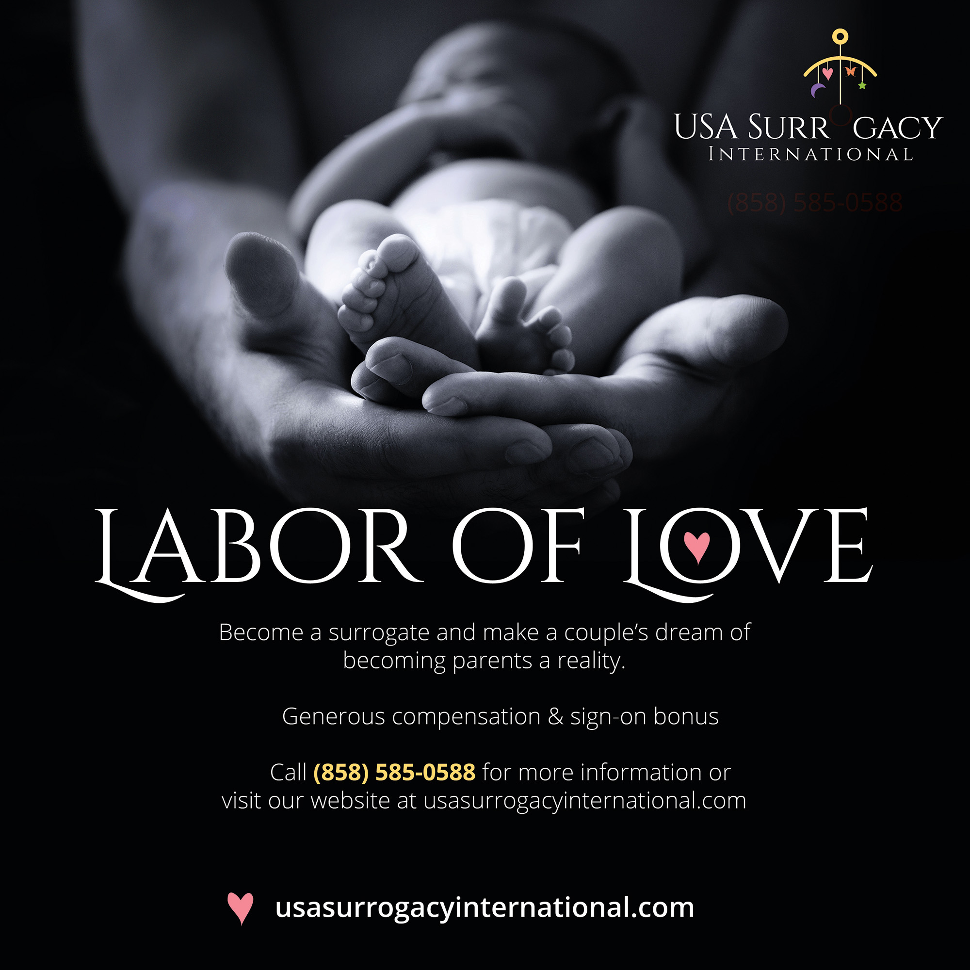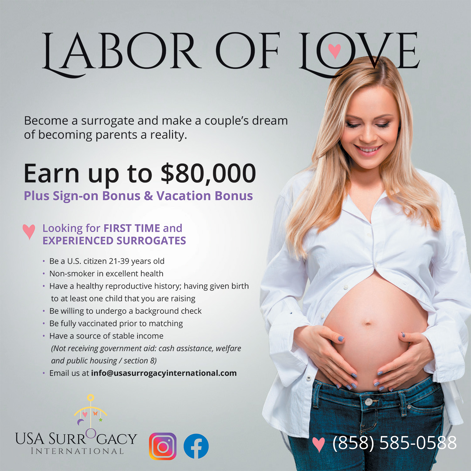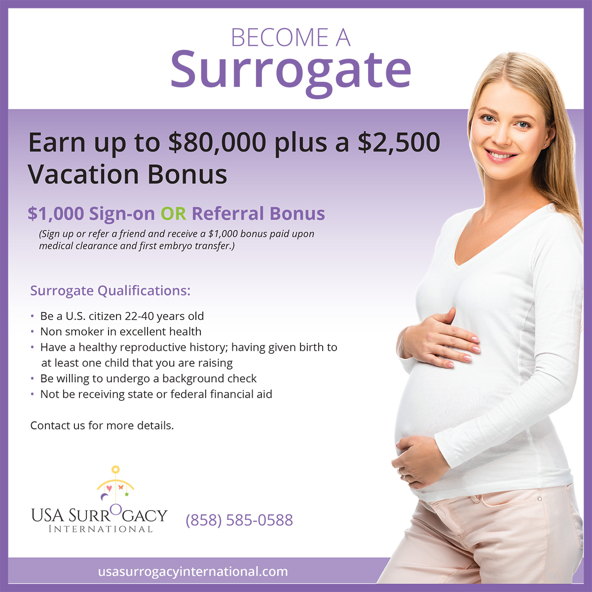 Digital ad for new surrogate mothers.