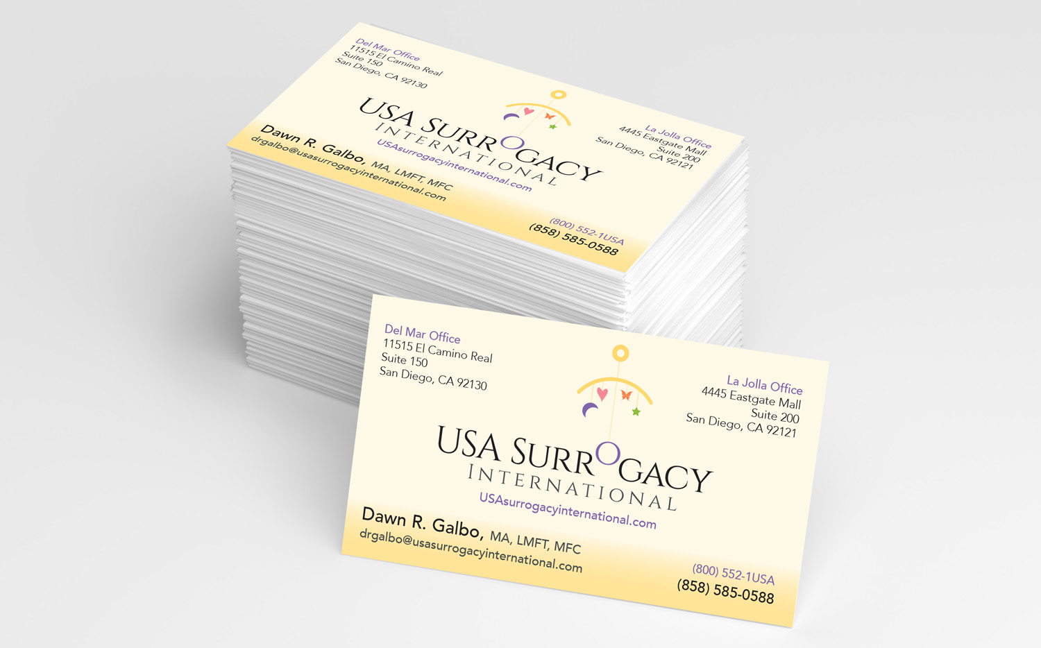 The brand for USA Surrogacy is not just about a process, but rather a journey. That journey looks different for every couple. It was important to focus on the joy of parenthood along with qualified resources to help guide the process from start to finish. The mobile in the logo represents the different paths each couple chooses, but with the same goal in mind of starting a family.